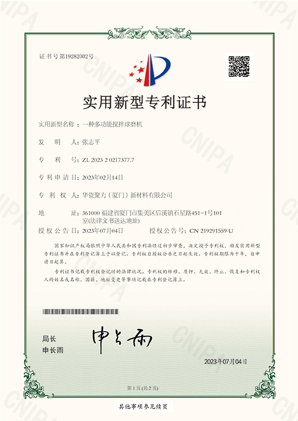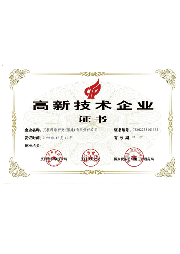 We have more than 30 national invention patents. The company has obtained ISO9001:2000 quality management system certification, environmental management system certification and occupational health and safety management system certification. Obtained national high-tech enterprise in 2022